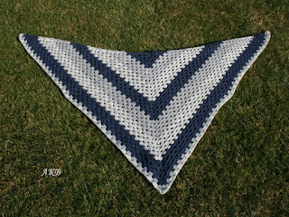 Wzięło mnie na drutowanie i szydełkowanie, a że nitek u mnie w bród, to ciągle jakieś pomysły do głowy mi wpadają. Dodatkowo biorę udział w akcji WZW, więc motywacji do dziergania mi nie brakuje. Tym razem wyszydełkowałam chustę bardzo prostym i wdzięcznym wzorem, łącząc szarości i granat.
